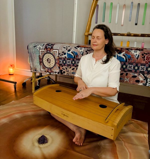 Gabi guides with your voice – words, sound and song, with love, with crystals, with the heartfelt soundwaves of the FuShin monochord 撫心琴 .