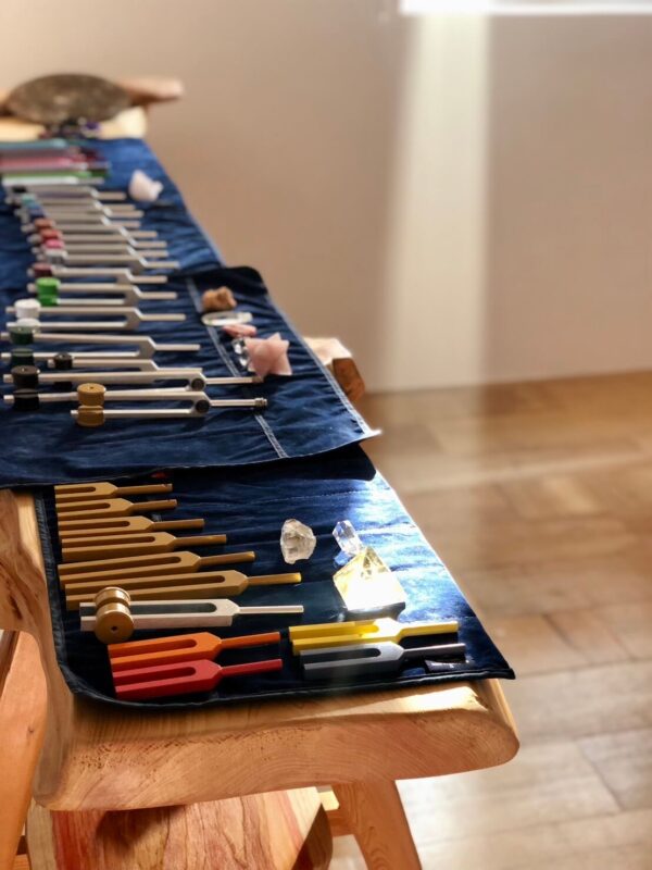 ༄ Tuning Forks: Using sound waves from meridian tuning forks to massage and unblock stagnant energy and blood flow.